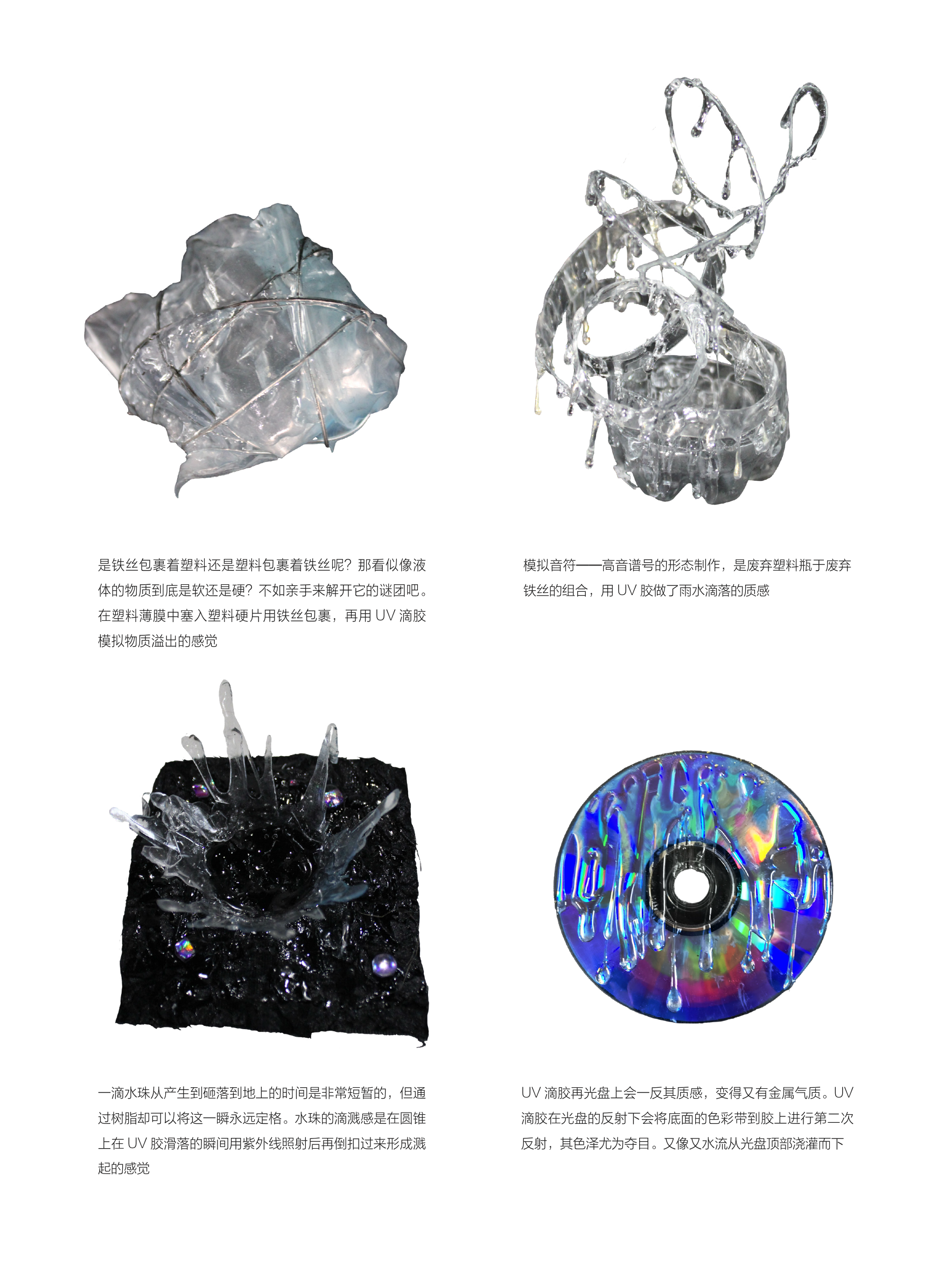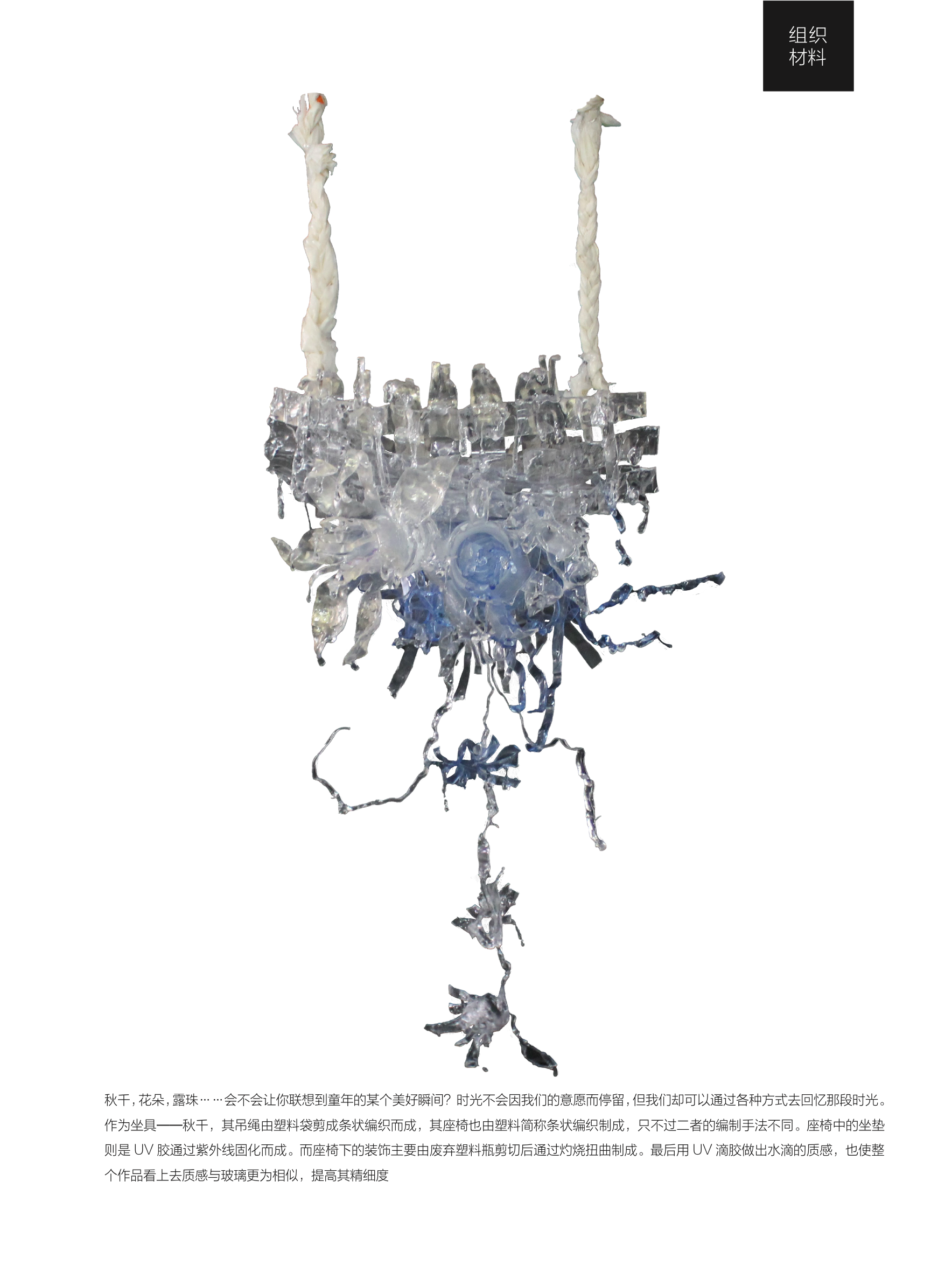 This piece, titled "Resin Swing," was created for a materials course. After experimenting with a diverse range of materials, I ultimately selected resin as my primary medium. I then pushed its boundaries through a series of experimental techniques—including heating, UV light exposure, and boiling—to innovate upon its inherent properties. The final work is a swing, constructed entirely from resin, representing the culmination of this material investigation and creative process.